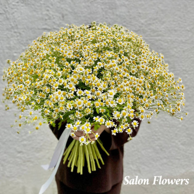 Ромашка (Камила, Танацетум) — 75 шт., атласная лента.