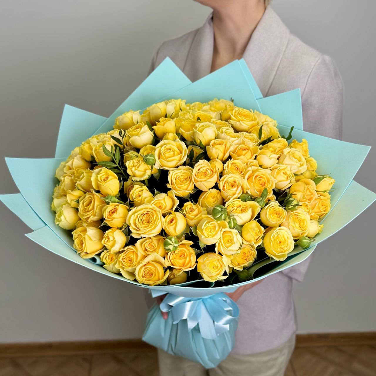 «Кустовые розы Арт» говорят без слов — о тепле душевных чувств, о светлом настроении, о желании подарить мгновение радости. В каждом изгибе лепестков, в каждом переливе жёлтого оттенка читается послание: «Ты — как солнечный луч в моей жизни». Это букет‑улыбка, способный растопить сердце и оставить в памяти тёплый, золотистый след.