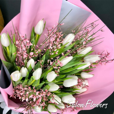 КОРП. Букет №30 Бади (25 тюльпанов с генистой)