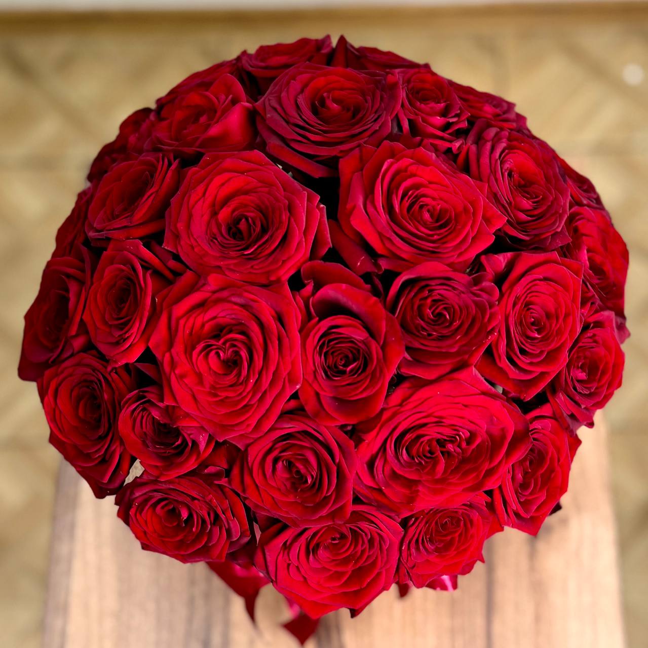 Букет «Ред Наоми» — это пылающее признание, воплощённое в 29 розах. Словно сердце, раскрытое навстречу чувствам, композиция в шляпной коробке дышит страстью, не скрывая ни силы эмоций, ни глубины переживания.