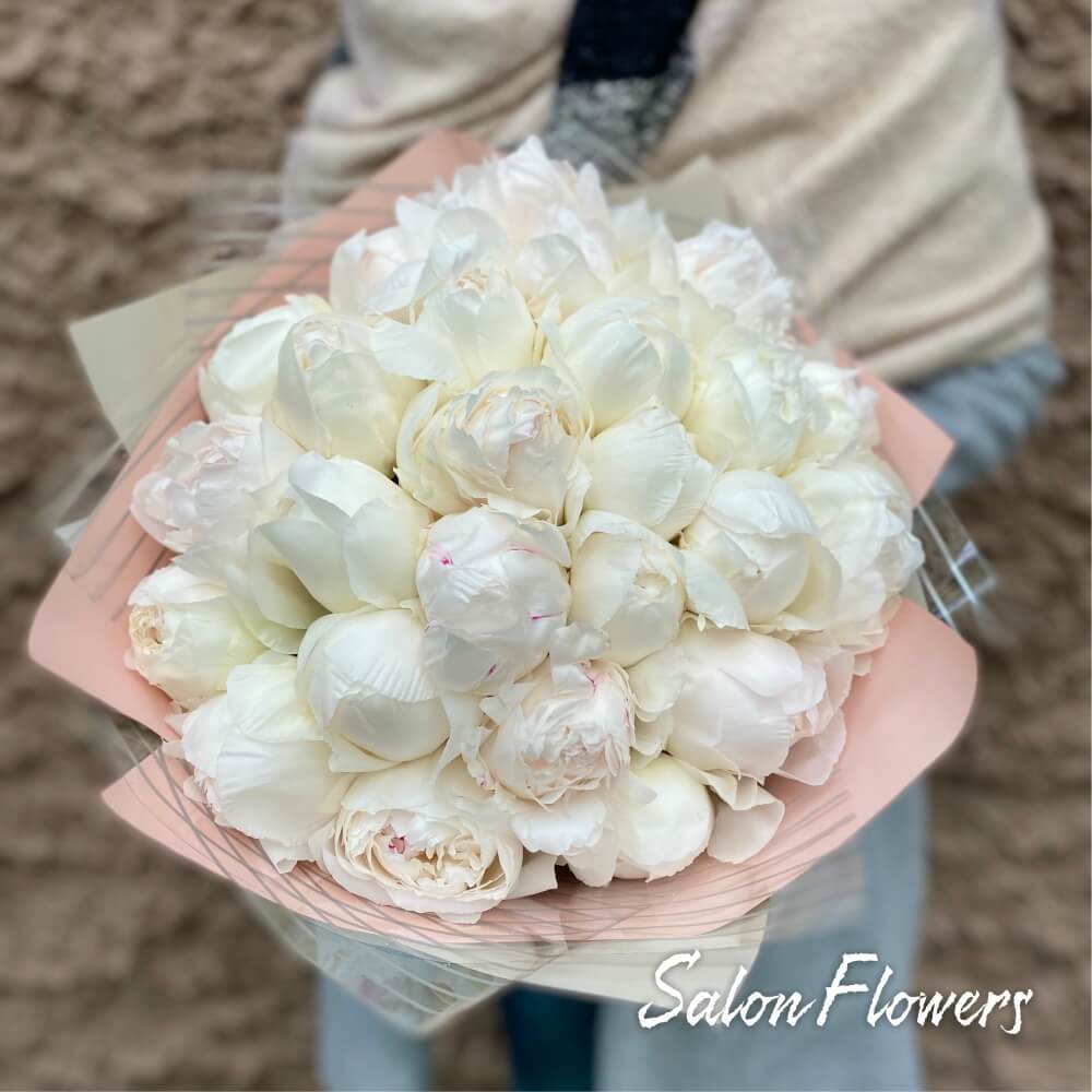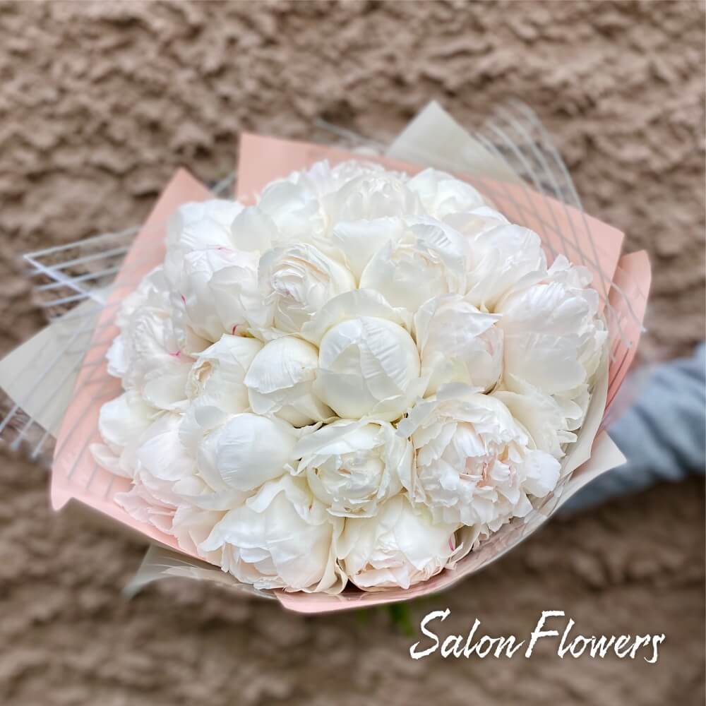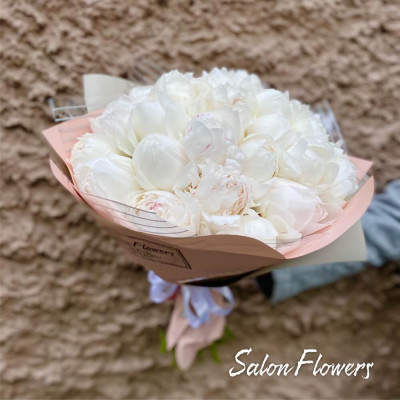 - Свадебного дня: Подарите невесте букет из 25 белоснежных пионов, чтобы подчеркнуть чистоту и нежность ее чувств.