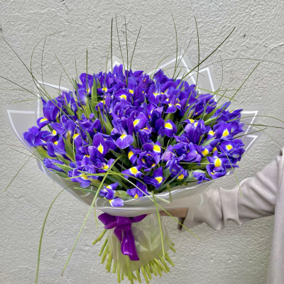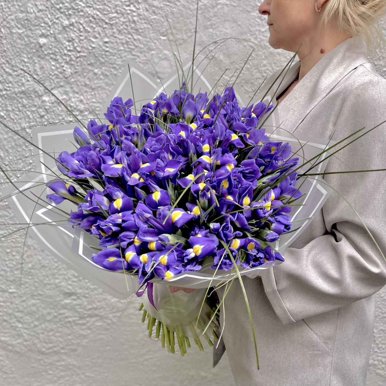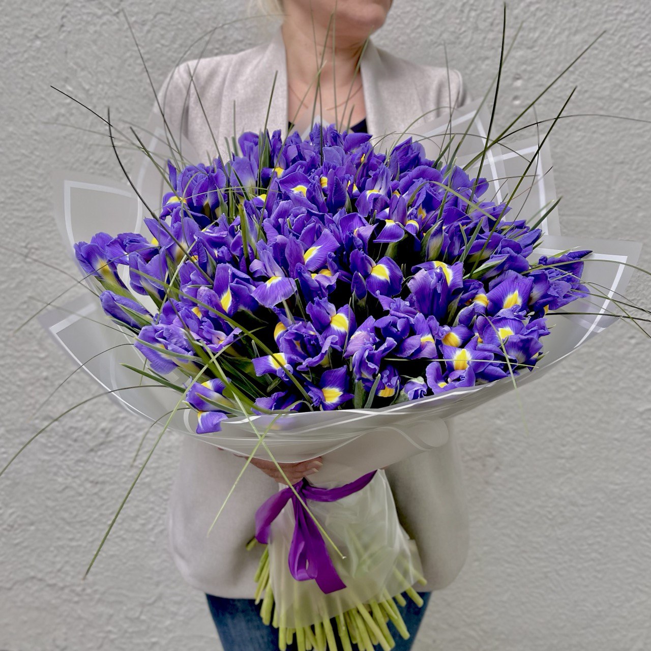 Ирис — 99 шт., берграсс, фирменная упаковка, атласная лента.