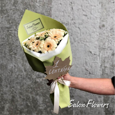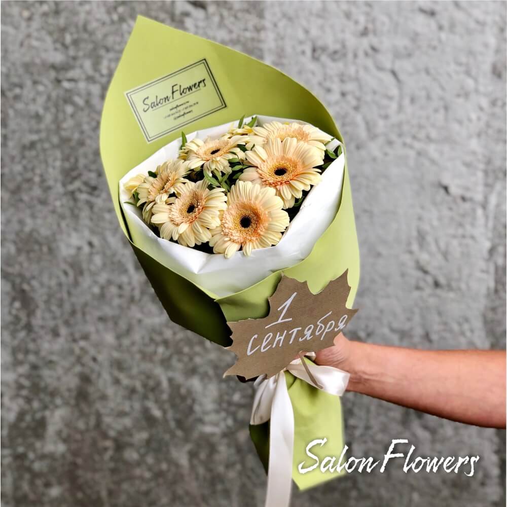Keywords: букет на 1 сентября, цветы на 1 сентября, гермини, подарок первокласснику, праздник, торжественный день, успех, радость, оптимизм, яркий акцент, стильная упаковка.