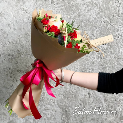 - Красивая упаковка: букет упакован в фирменную упаковку, которая подчеркнет торжественность момента.