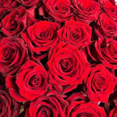 Букет «Эксплорер» — это пламенное признание, воплощённое в тридцати одной розе. Насыщенно‑алые бутоны словно хранят в себе трепетное биение сердца: каждый — отдельное послание, сложенное из нежности и страсти.