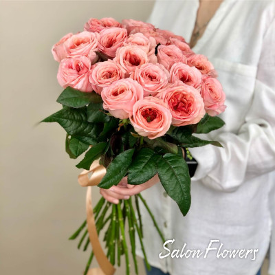 - Элегантный дизайн: 19 роз, собранных в элегантный букет, создают ощущение роскоши и торжественности. Атласная лента придает букетику изящества и подчеркивает его нежность.