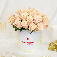 Цветы в шляпной коробке "Нежное счастье" (19 роз)