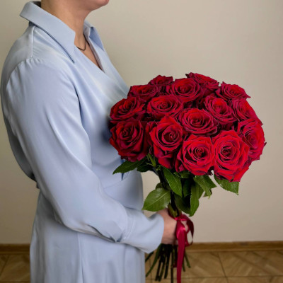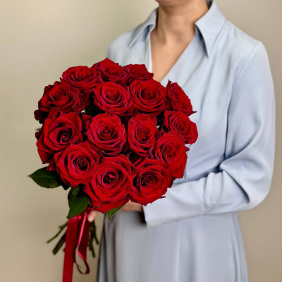 Букет «Эксплорер» — 15 роз «Эквадор Эксплорер» в сопровождении атласной ленты.
