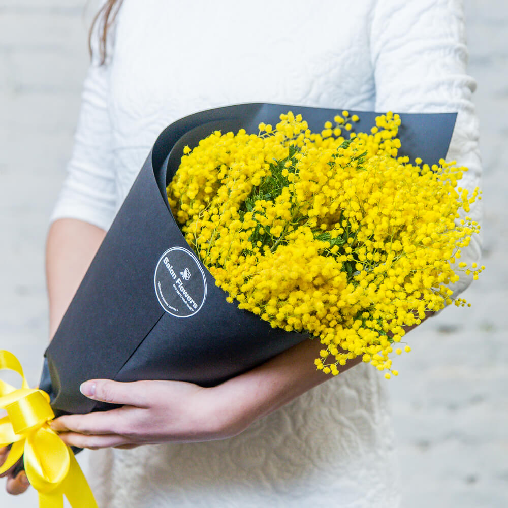 Итальянская Мимоза — 1 банч, фирменная упаковка, атласная лента.