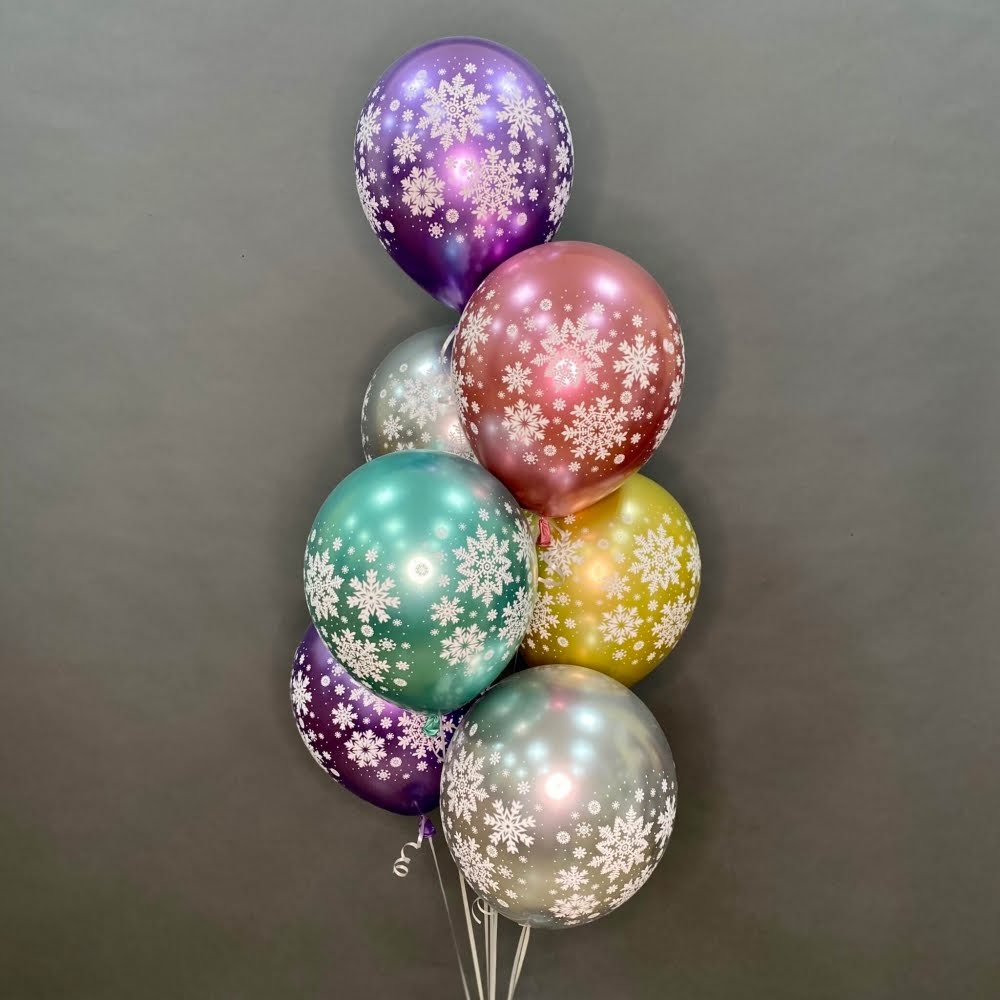 Этот очаровательный комплект из латексных шаров, украшенных милыми снежинками, добавит волшебства и праздничного настроения любой обстановке.