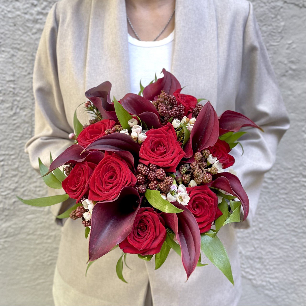 Позвольте вашему торжеству стать поистине незабываемым с роскошным букетом невесты "Афина"! Этот изысканный букет, созданный специально для самых важных моментов в жизни, сочетает в себе красоту классических роз и нежность экзотических цветов.