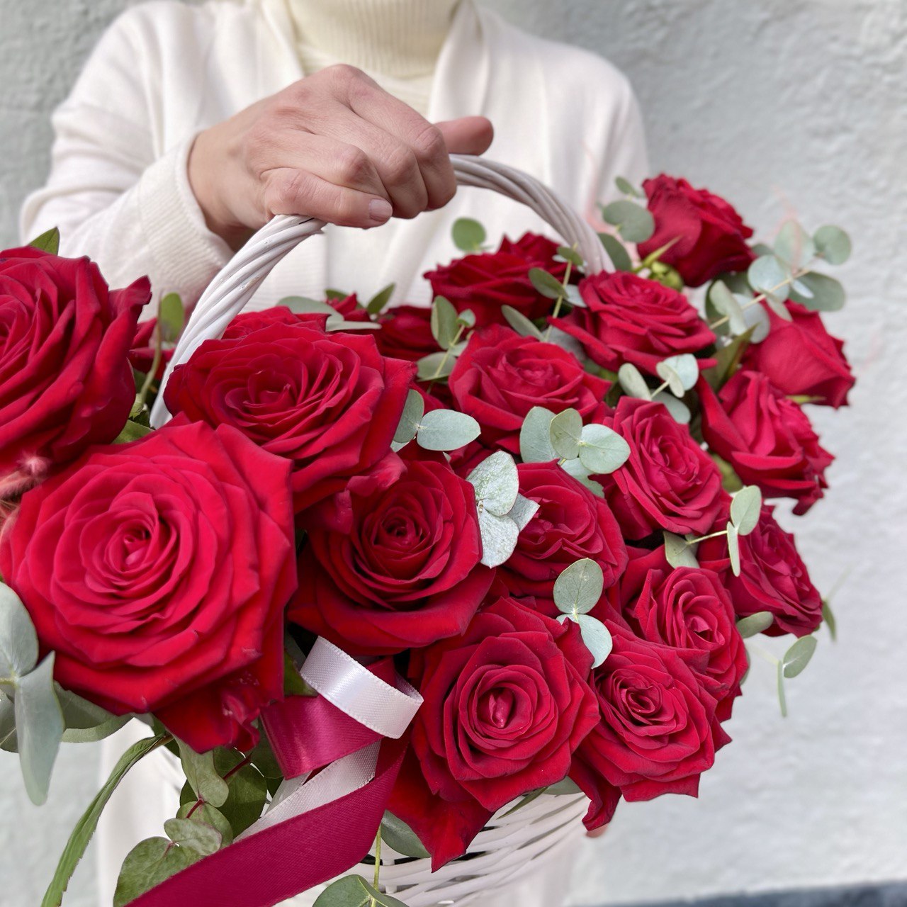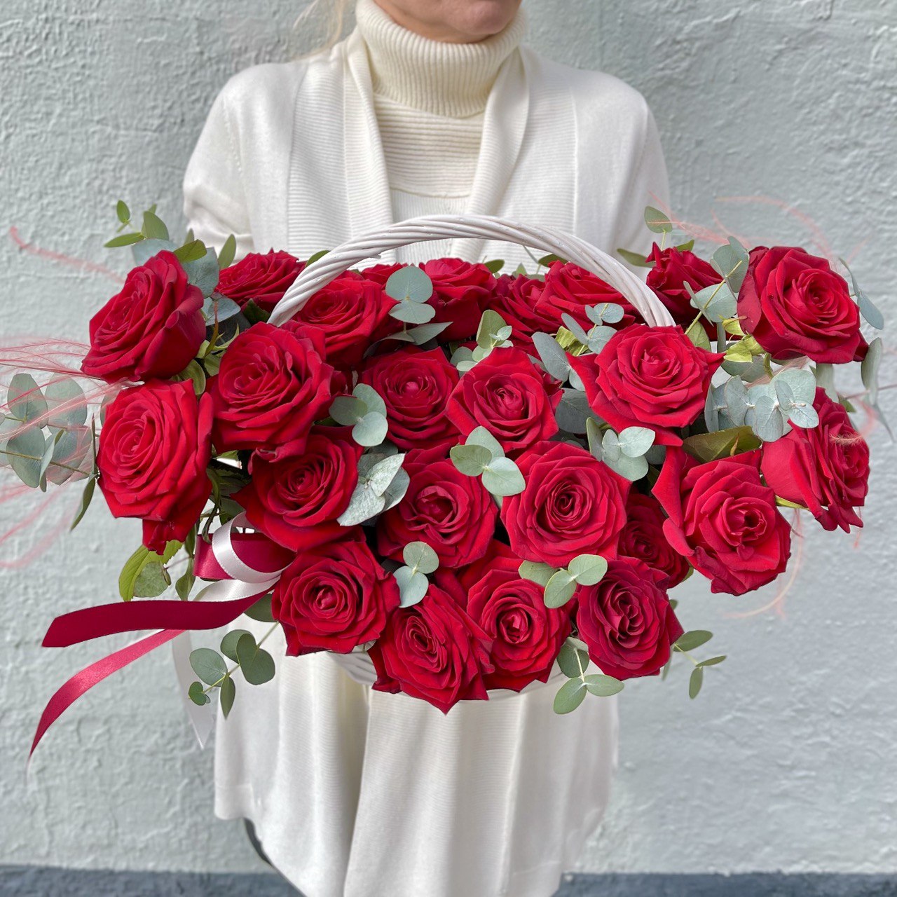 Цветы в корзине "Корзина Ред Лав" (35 роз)