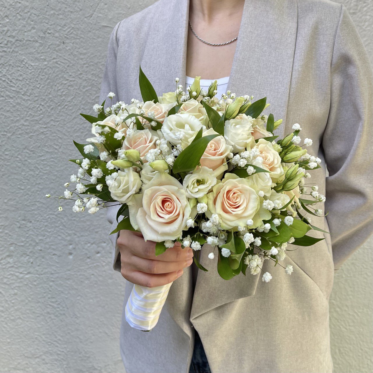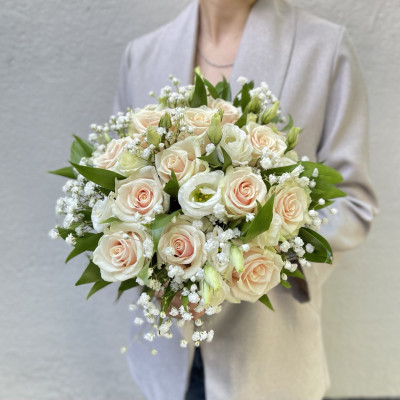 Букет невесты «Мечты невесты» — как поэма, написанная языком цветов. В каждой его линии читается трепетная нежность и безмятежная романтика, словно застывшие в мгновении свадебного торжества.