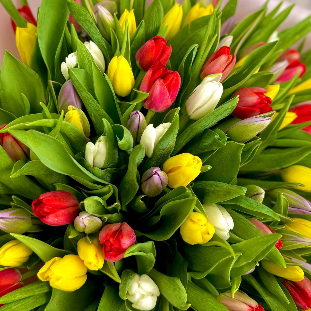 - Богатство красок: 101 тюльпан в разнообразной палитре создает радужный эффект, наполняя комнату теплом и светом.