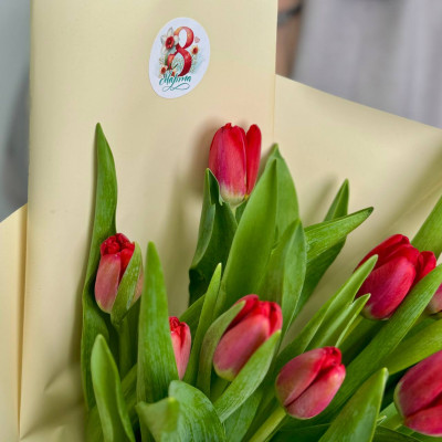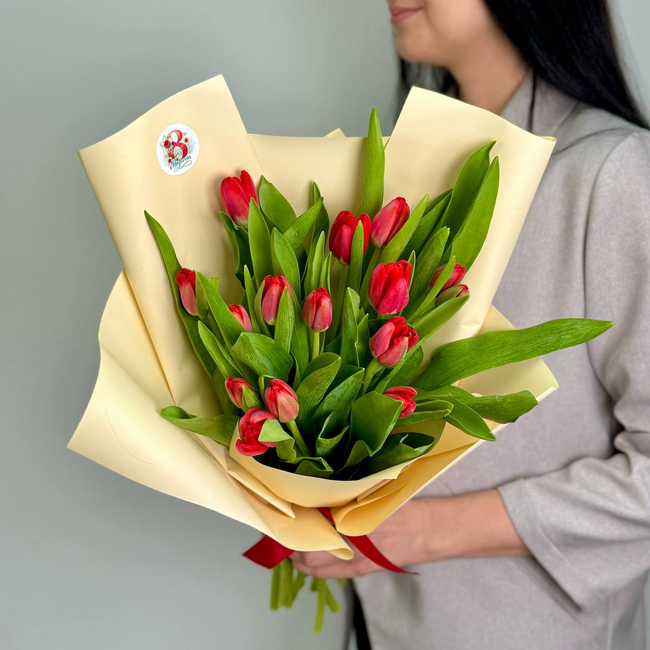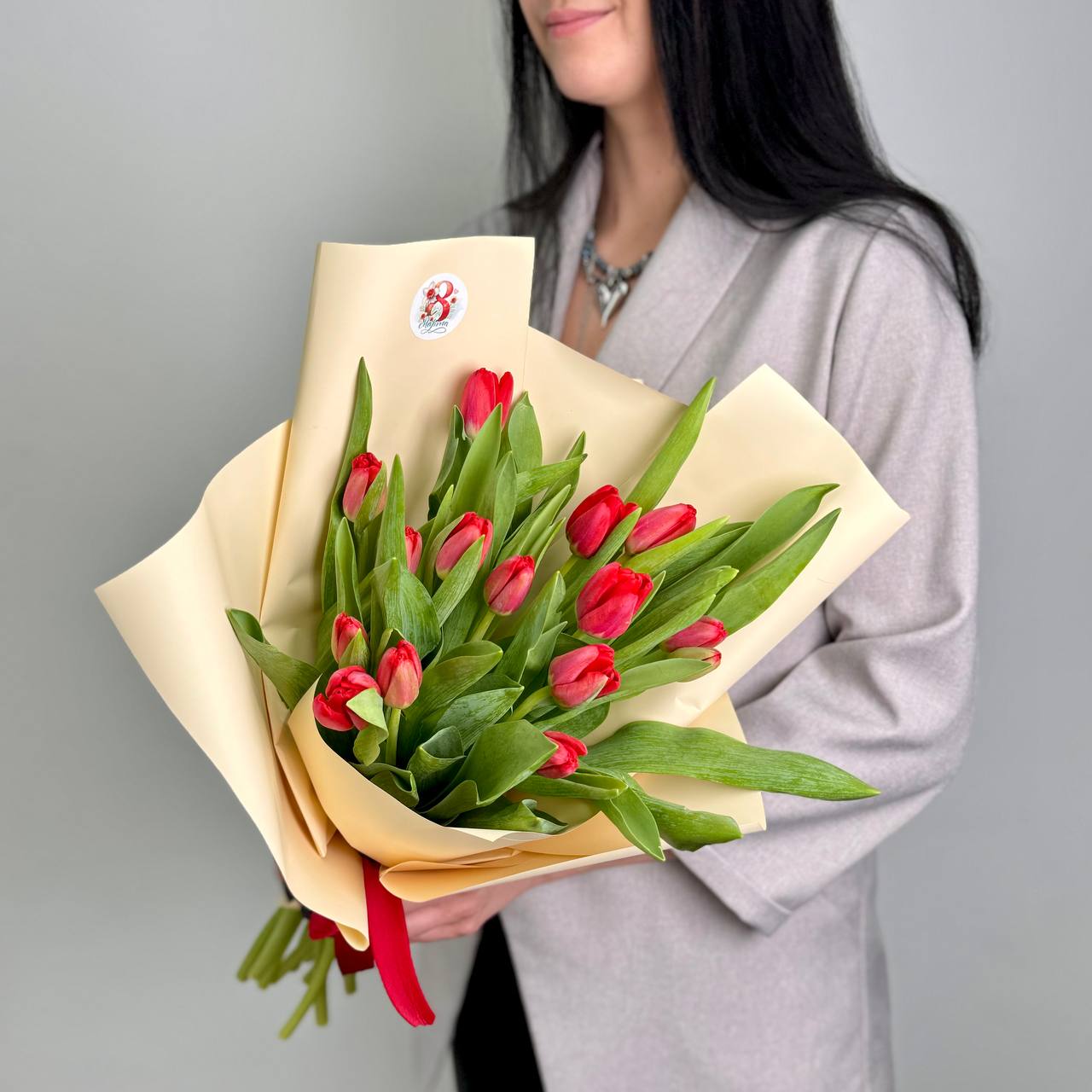 Красота и страсть в каждом лепестке: букет "Редс" к 8 Марта из 15 красных тюльпанов