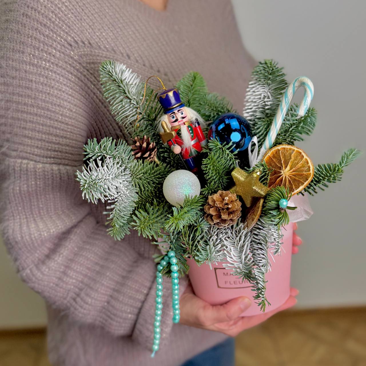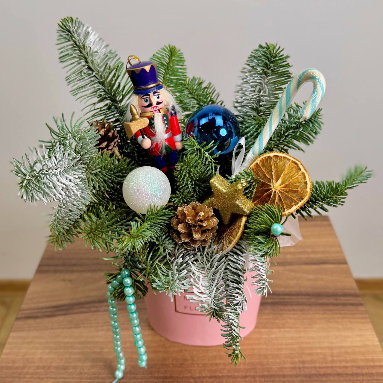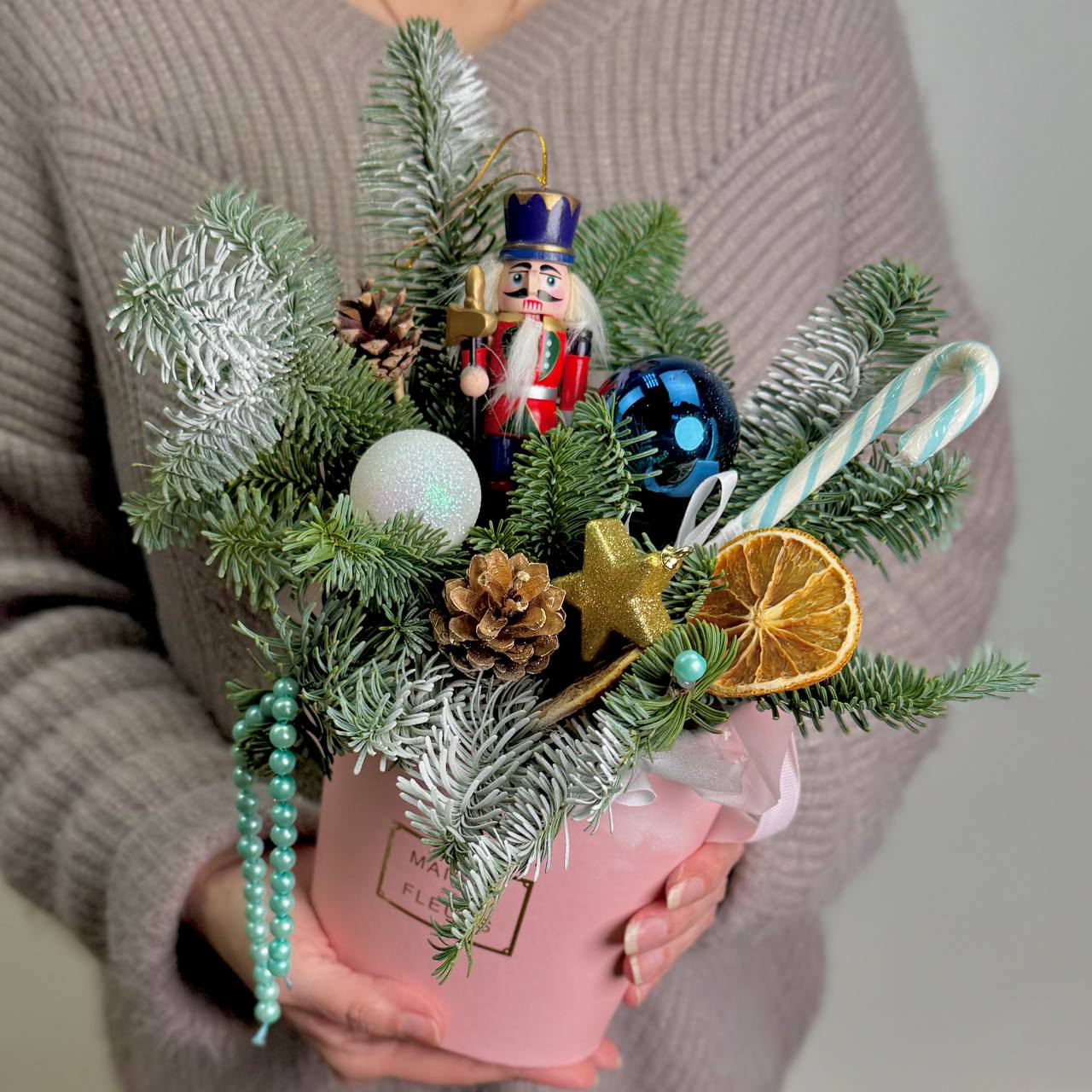 В уютном кашпо оживает настоящая рождественская сказка — цветочная композиция «Сказочный Щелкунчик». Словно по мановению волшебной палочки, здесь собрался маленький праздничный мир, где каждая деталь рассказывает свою историю.